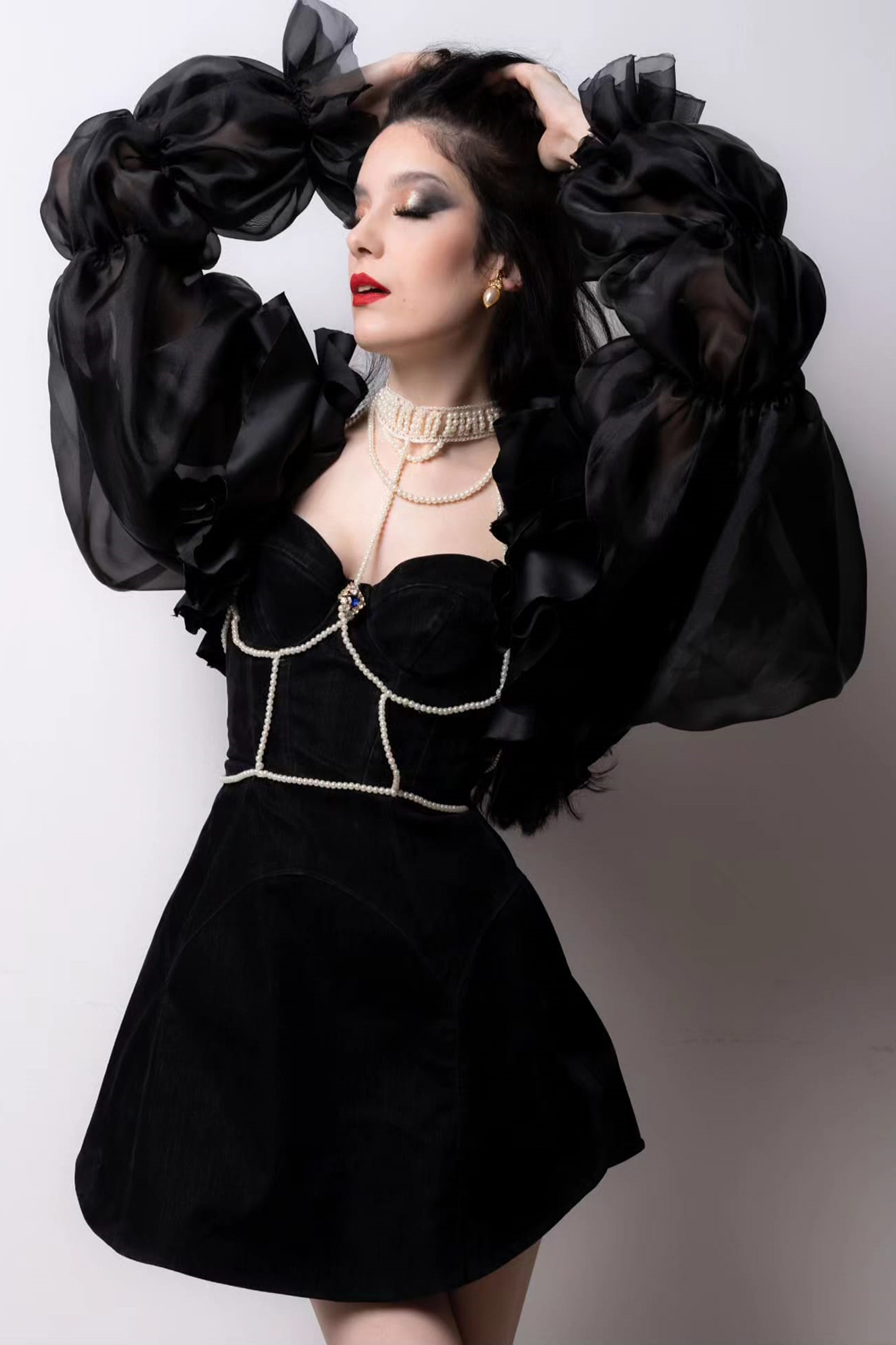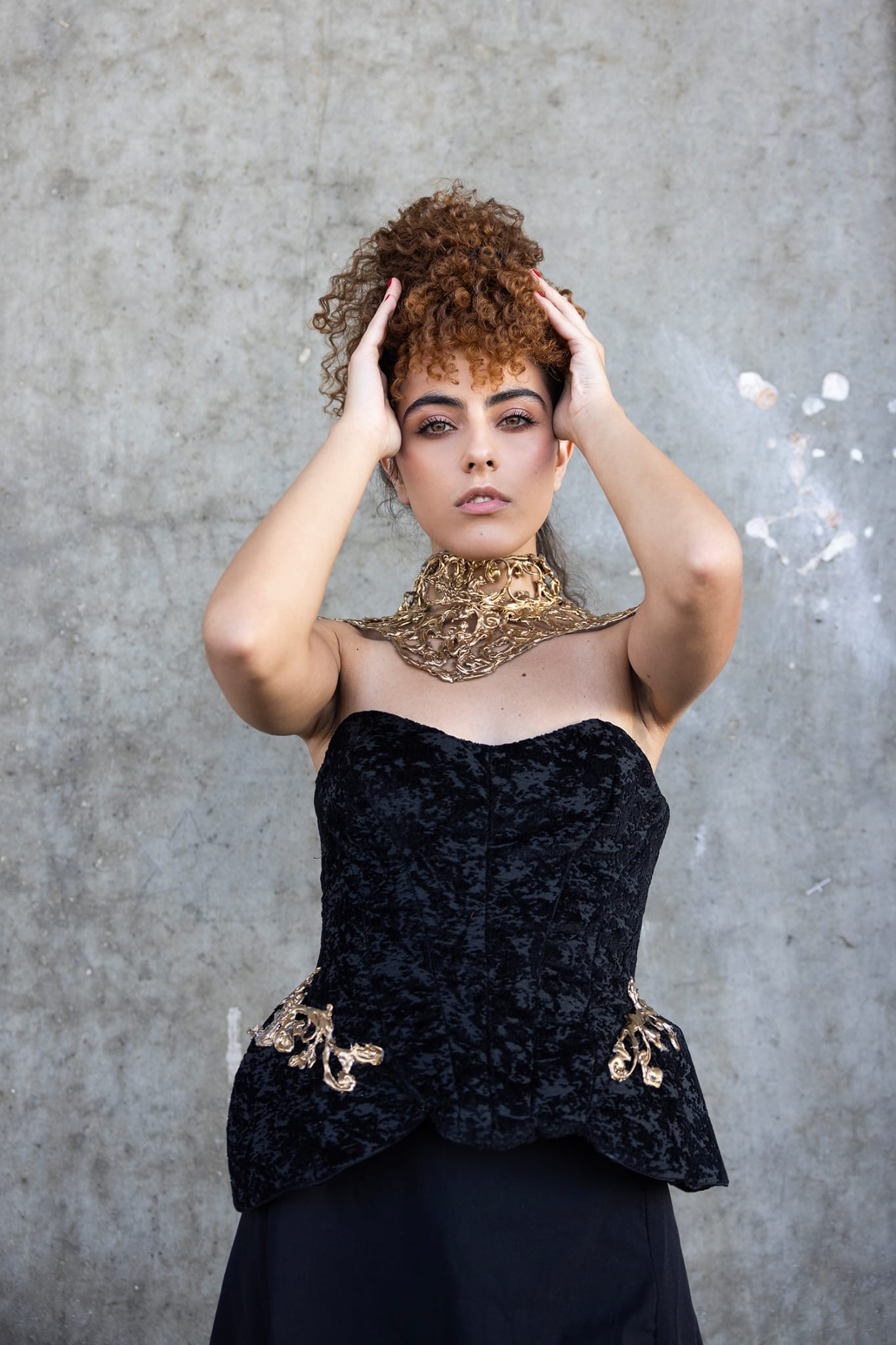 PLIŠANI KORSET SA ZLATNOM KOLAJNOM I DRAPIRANOM SUKNJOM